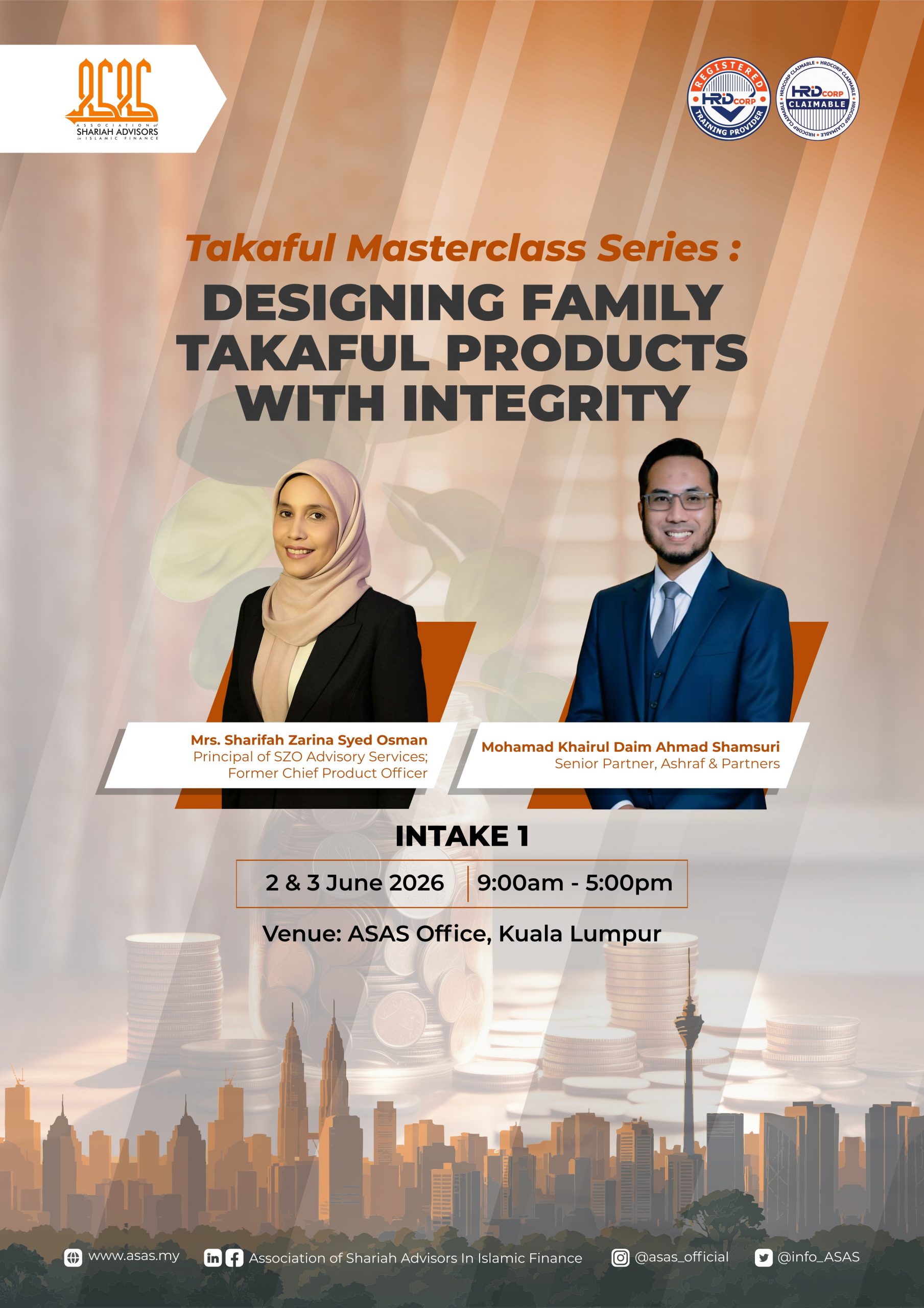 ASAS is pleased to present the Takaful Masterclass Series: Designing Family Takaful Products with Integrity – a specialised programme designed for organisations seeking to strengthen their product governance, Shariah compliance, and market competitiveness.